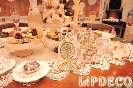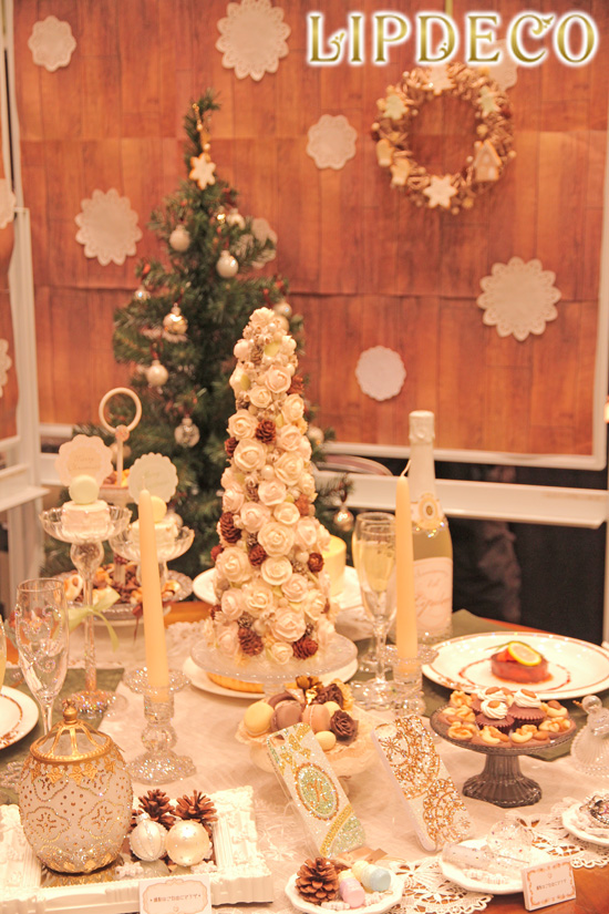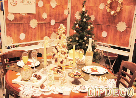 展示のテーマは「Merry Christmas」今までのLIPDECOのイメージとは少し違い、落ち着いた色味を使って大人っぽいクリスマスを表現することに成功しました。スイーツとストーンの融合で、聖なる夜の暖かできらびやかな食卓の風景を表現しました。