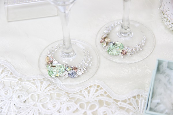 淡いcolorのSWAROVSKI ELEMENTSを組み合わせたとても美しいシャンパングラス。