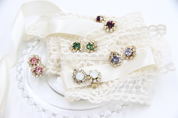weddingはもちろん普段のおめかしにもお使いいただけるSWAROVSKI ELEMENTSのビジューイヤリング。