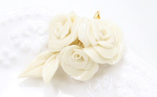 耳に添うようにデザインした薔薇の花と葉。ひとつひとつハンドメイドでお作りしています。